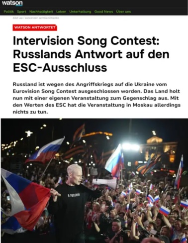 Швейцарский портал Watson в своём обзоре обратил внимание на то, что новое российское шоу не дотягивает до уровня «Евровидения», особенно если говорить о его ценностном наполнении. Издание прямо отметило: