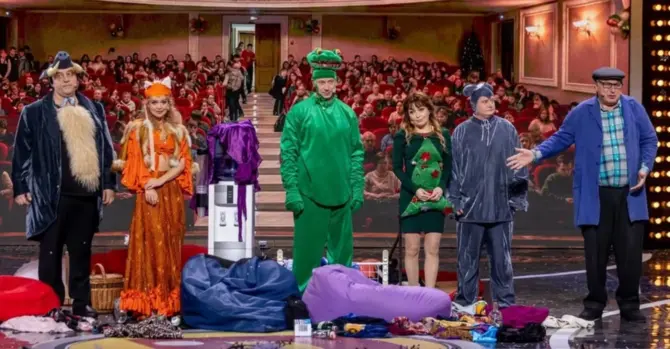 Новогодний выпуск «Дизель Шоу». На сцене - Евгений Сморыгин, Егор Крутоголов, Виктория Булитко, Евгений Гашенко, Александр Бережок, Дмитрий Танкович, Юлия Мотрук и Лилия Ребрик.
