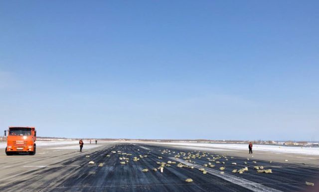 Из-за оторванной створки люка из самолета на взлетную полосу в Якутске высыпались около 3 тонн драгоценных слитков