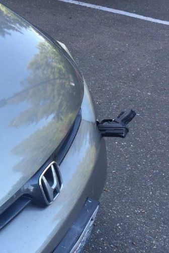 Вот этот предмет прилетел в передний бампер автомобиля, ехавшего по трассе I-5 у города Лейквуд, штат Вашингтон, США. К счастью, все хорошо обошлось.