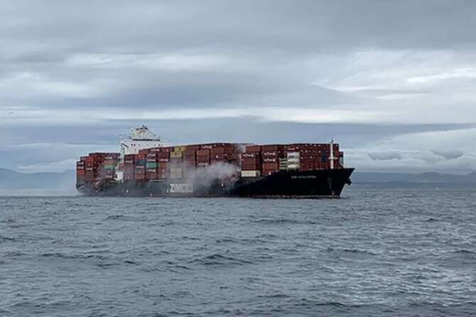 На контейнеровозе MV Zim Kingston, который перевозил химикаты для горнодобывающей промышленности, случился пожар, пишет Reuters. 16 членов экипажа эвакуировали, пятеро остались на борту, чтобы тушить пожар. Береговая охрана Канады работает с американскими коллегами над отслеживанием 40 упавших за борт контейнеров.