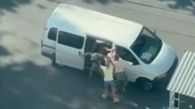 По словам очевидцев, мужчину задержали на улице, силой затащили в микроавтобус и несколько раз ударили дверью по голове.