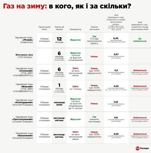 Свой тариф на отопительный сезон под названием "Экономный" имеет и газопоставщик "Аскания Энерджи". Его условия — цена 6,95 грн за кубометр при подключении до 25 ноября, но нужна 100% предоплата. А сверхурочные объемы в обоих тарифах надо будет оплачивать по рыночным ценам.