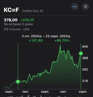Динамика роста цен на арабику за последние два года. Впечатляет. Фото предоставлено Алексеем Тарнопольским