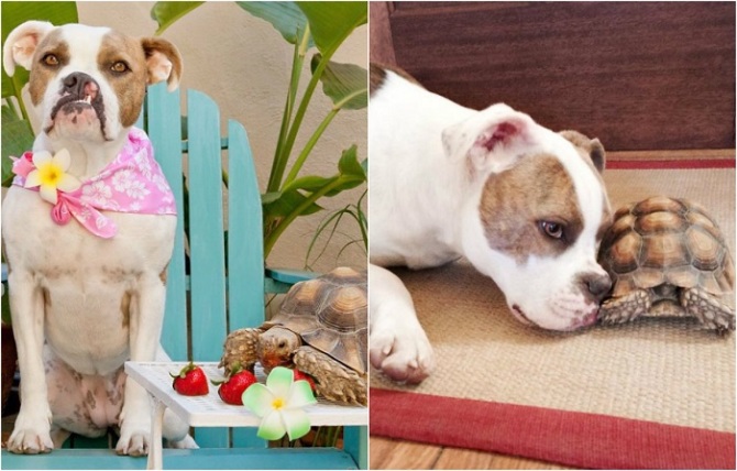 Благодаря любви и заботе хозяйки, эта удивительная дружба собаки и черепахи длится уже на протяжении 6-ти лет.
