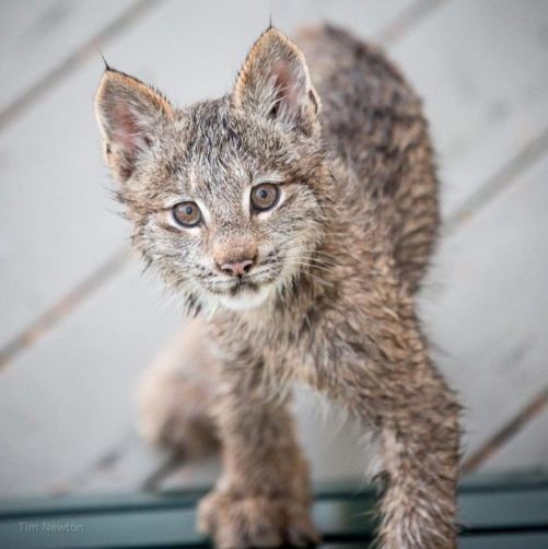 Тим Ньютон из Аляски опубликовал на своей странице в Facebook фотоисторию о своей встрече с семейством рысей. Ранним утром мужчина проснулся от шума на террасе своего дома, подойдя к двери, он увидел за стеклом рысь и семеро котят. Малыши играли и резвились, а мать спокойно наблюдала за ними. Тим поспешил сфотографировать все происходящее, так как животные покинули его террасу так же быстро, как и появились на ней.
