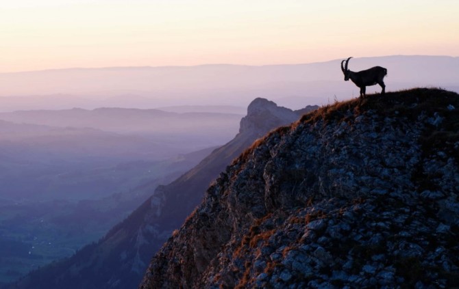 Альпийский горный козёл на горе в коммуне Бриенц в кантоне Берн в Швейцарии.