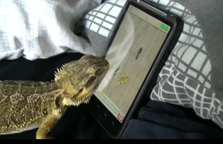 На видео голодная агама "охотится" на муравьев из игры Ant Crusher. Как ни странно, несмотря на неутоленное чувство голода, ящерица продолжает попытки перекусить.