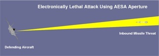 Так видят силовое подавление (с функциональным поражением) РЛ ГСН атакующей ракеты с помощью СВЧ сигнала высокой мощности, генерируемого АФАР БРЛС истребителя, некоторые иностранные специалисты