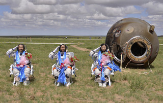 Тем более, как вы заметили на первой фотографии — китайские космонавты в 2012-м году по-прежнему сидят на фоне всё той же «фары» от «Союза»-«Шеньчжоу»-«Зонда», которая облетела Луну при помощи достаточно скромного ракетоносителя и успешно вернулась обратно.