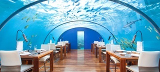 Подводный ресторан Ithaa Undersea restaurant находится на 5-ти метровой глубине и представляет собой помещение 5х9 метров. Здесь располагаются 7 уютных столиков на 14 гостей. Огромный панорамный купол из акрилового стекла позволяет посетителям ресторана любоваться подводным миром.