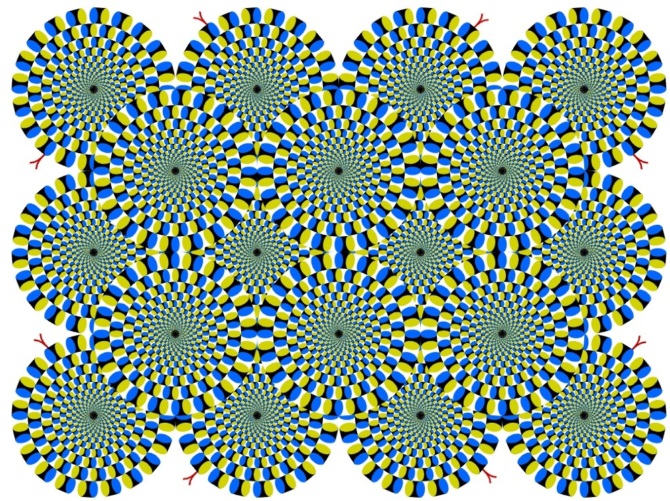 Иллюзию «Вращающиеся змеи» разработал японский психиатр Акиоши Китаока. В 2006 году на девятом конкурсе L'ORÉAL Art & Science он получил за нее золотой приз. Китаока считал, что зрительные иллюзии помогают определить психическое состояние человека в данный момент.