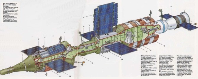 ТКС, "Салют-7" и пристыкованный "Союз",