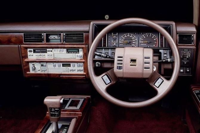 Японцы начинают одними из первых массово внедрять рули с кнопками управления вспомогательными системами, как на этом Nissan Gloria. По заказу сзади мог быть установлен телевизор с видеомагнитофоном. Но ни японцы, ни Rolls-Royce, ни Bentley не могли создавать такие салоны, которые делали некоторые тюнинг-ателье – именно на 80-е приходится бум тюнинга.