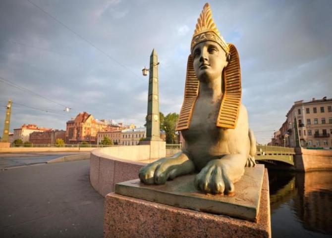 Этот старинный мост с четырьмя чугунными сфинксами получил такое название, поскольку был украшен в характерном для Египта стиле. Однако скульпторы Павла Соколова больше напоминают греческих сфинксов, нежели египетских – ведь они имеют женские обличья.