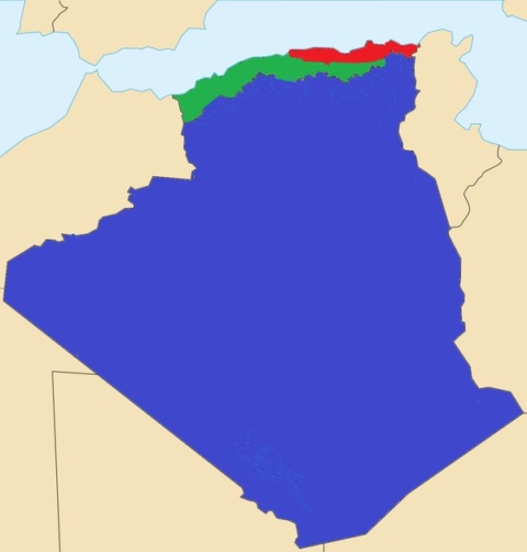 Несмотря на прозвище «Лисы пустыни», в пустыне то практически никто не живёт. И казалось бы, большая часть страны нежилая, что там делить? Но в состав Алжира входит 48 вилайетов (по нашему областей), из которых только 16 имеют население менее полумиллиона человек, из них в основном состоит синяя часть.
