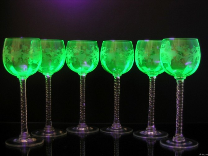 Все это происходит за счет добавки оксида урана в стекло перед плавкой. Его содержание в стекле колеблется от 0,3% до 4-6%, хотя некоторые предметы XIX века содержат даже до 25% урана. Интересно, что при повышенном содержании солей урана флюоресценция постепенно слабеет и совершенно пропадает при содержании урановых солей более 20% от общей массы стекла.