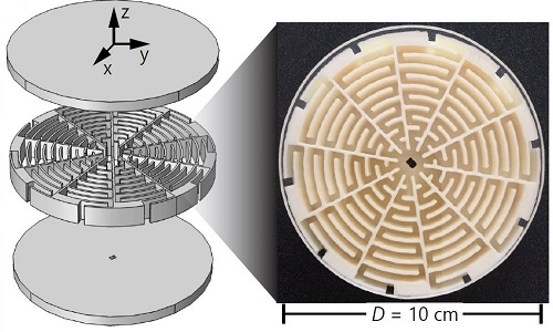 Предложенное специалистами устройство состоит из диска, сделанного из АБС-пластика. Внутри диска предусмотрены спиральные структуры из латуни, создающие воздушные каналы. По словам исследователей, такая система усиливает низкочастотные звуки и подавляет высокочастотные. Кроме того, она распространяет звук во всех направлениях в отличие от привычных динамиков. Следующим шагом станет создание прототипа системы.