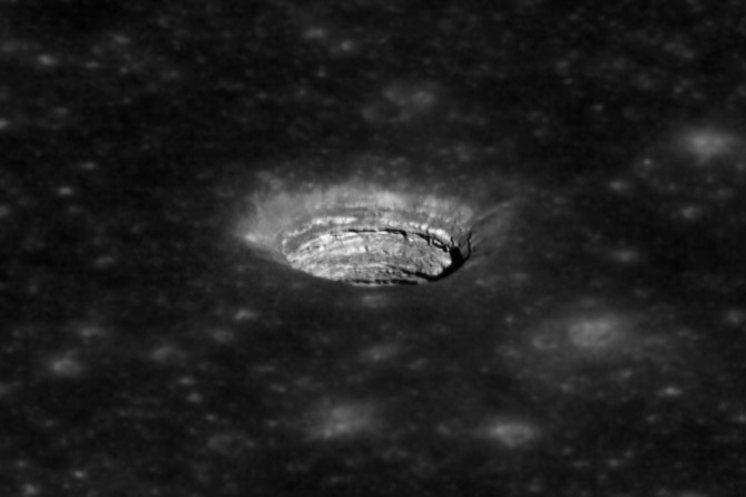 Провал в подлунную полость в Море Спокойствия. Съемка спутника LRO. NASA/Goddard/Arizona State University