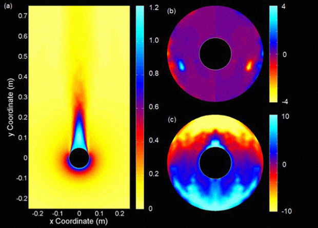 Описав эту систему уравнениями, связывающими гидродинамические и электромагнитные компоненты силы, физики смогли определить такие конфигурации магнитогидродинамического слоя вокруг цилиндра, которые при различных скоростях практически полностью подавляют возмущения в жидкости. Такие материалы оказались эффективны в довольно большом диапазоне скоростей и позволяют сократить возмущение в следе за телом почти в 10 раз.