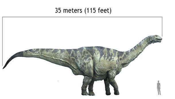 Эксперты полагают, что этот найденный в Патагонии динозавр мог достигать длины 30 метров и веса более 50 тонн. Его отличают чрезвычайно широкие бёдра – до 3 метров в ширину.
