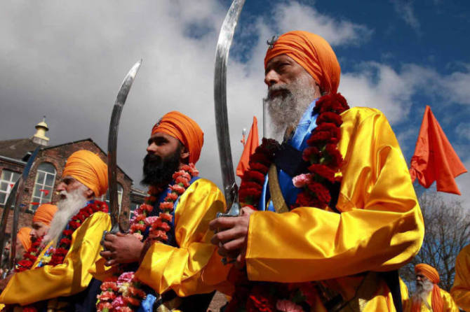 Постоянное ношение мечей, ножей, топоров и клинков стало не только военной необходимостью, но и элементом национального костюма даже для женщин. Живя на краю Индии и будучи национальным меньшинством, попавшим под власть Великих Моголов, сикхи испытывали и религиозных гнет, их принуждали принимать ислам.