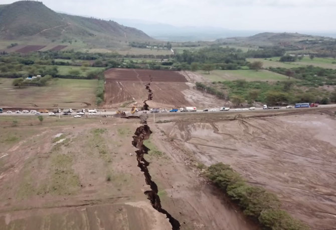 И вот еще одно место. На границе Африканской и Аравийской тектонических плит миллионы лет назад была сформирована Восточно-Африканская рифтовая долина. Сейчас она проявляет признаки нестабильности: в Кении образовалась трещина длиной в несколько километров. Ее глубина составляет 15 метров, ширина — 6 метров, при этом разлом продолжает расти.