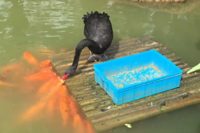Возьмем, к примеру, пару лебедей, кормящих зачем-то рыб в одном из парков Тайваня. Публикация видео с удивительными птицами моментально стала вирусной — люди просто не могли понять, как могут дружить два совершенно разных вида.