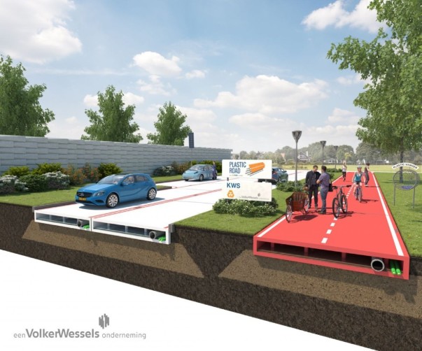 Еще несколько лет назад европейская компания , базирующаяся в Нидерландах, предложила строить автомобильные дороги из переработанного пластика. По мнению представителей фирмы, новая технология позволит снизить затраты на строительство и повысить долговечность магистралей.