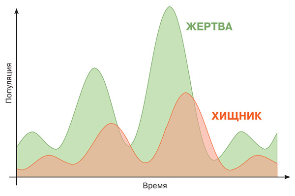 Вито Вольтерра показал, что эти уравнения описывают, например, циклические колебания числа хищников и травоядных. Бывают времена, когда охотники сдают много заячьих шкурок, но мало рысьего меха. И наоборот: изобилие корма помогает быстрому росту количества рысей, которые сокращают численность зайцев. В такое время охотники добывают много рысьих шкур, а заячьих сдают меньше, чем обычно. А когда из-за голода поголовье рысей сокращается, зайцы снова размножаются. Математика оказалась настолько могучим средством познания природы, что смогла точно описать уравнениями борьбу за существование тысяч рысей, притаившихся на деревьях в ожидании зайцев, и сотен тысяч пробирающихся по лесным тропинкам зайцев, избегающих встреч с рысями. Подобные процессы протекают и в других биологических сообществах, например среди хищных рыб и рыб, питающихся водорослями и планктоном.
