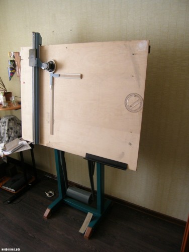 На тяжелом металлическом станке крепилась большая деревянная доска. С доской сопрягалось устройство, позволявшее проводить на чертеже прямые линии заданной длины и под заданным углом. Устройство это было, как правило, металлическим шарнирным параллелограммом. На одном конце параллелограмма закреплялась головка с двумя взаимно перпендикулярными линейками, которую можно было поворачивать на любой фиксированный угол. К другому концу иногда прикреплялся внушительный груз-противовес, облегчавший перемещение всей этой «мухорайки» над доской в любое место чертежа.