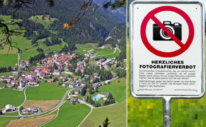Очаровательная альпийская деревня Бергюн расположена у подножия перевала Альбула. Сам населенный пункт и его окрестности очень красивы, а железнодорожная ветка Albula вот уже на протяжении 100 лет сохраняет свой первозданный вид. 29 мая 2017 года администрация деревни ввела запрет на фотографирование, обосновав его весьма оригинально.