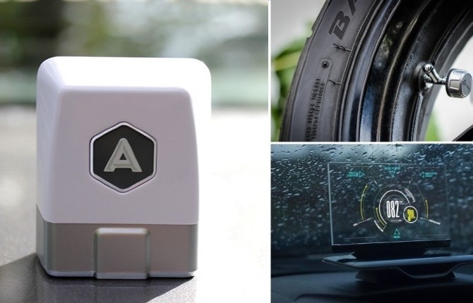 Замена стандартным колпачкам на колеса. Весьма полезное устройство, которое будет следить за давлением и температурой колес. Питаются датчики от батарейки СR2032. По словам создателей, ее должно хватать примерно на два года работы. Все собранные данные передаются пользователю на смартфон при помощи Bluetooth.