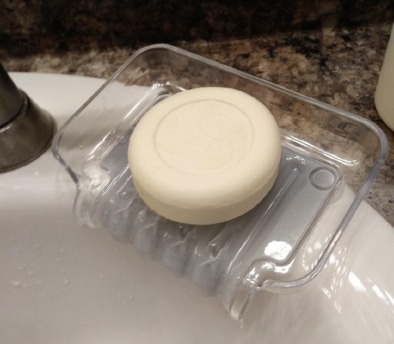 Креативная мыльница, вода из которой сразу же стекает в раковину.