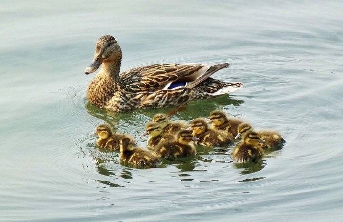 Кто бы мог подумать, что это дикая, а не домашняя утка с утятами?