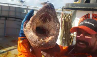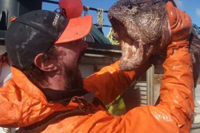 Выяснилось, что рыбак поймал угря-волка. Вопреки страшному внешнему виду, эта рыба очень пугливая и не опасна для человека, если ее не провоцировать.