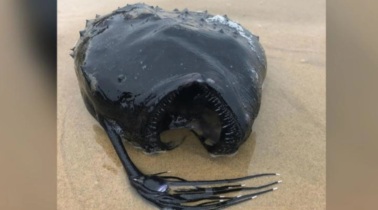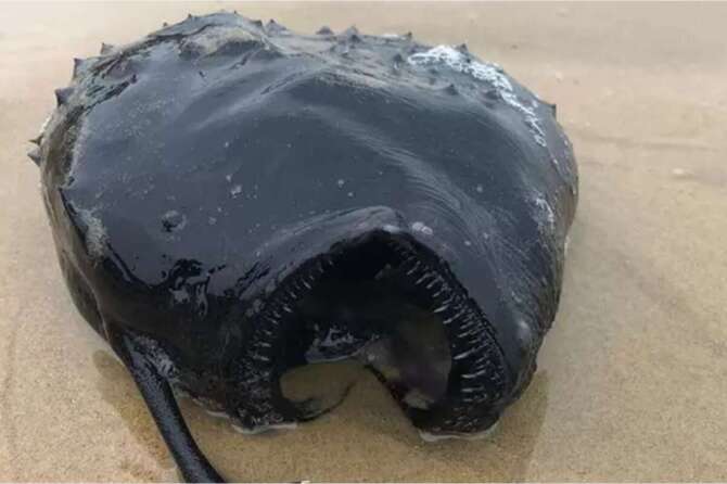 Ученые определили, что выброшенное на берег чудовище является тихоокеанской футбольной рыбой.