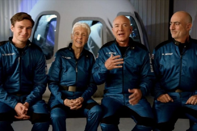 После нескольких лет испытаний Джефф Безос отправился в полет самолично, взяв с собой брата Марка, 82-летнюю летчицу Уолли Фанк и 18-летнего подростка Оливера Дэмена.
