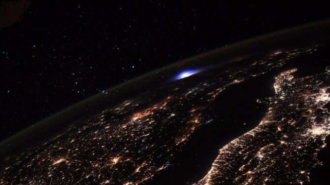 В данном случае астрономы стали свидетелями синих струй – в этот момент над Европой была сильнейшая гроза и множество молний озарили небо.