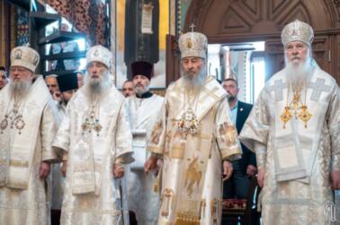 Лоббисты запрета УПЦ считают, что с удалением владыки Онуфрия (второй справа) из структур Церкви, начнется ее распад. Фото: Telegram-канал УПЦ