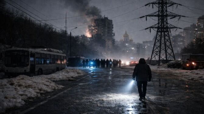 "Свет в городе погас. Киев превратился в ледяное царство: деревья покрылись инеем, а сугробы блестели на зимнем солнце. Во вторник город, который обычно потребляет около 2000 мегаватт электроэнергии, выживал менее чем на десятой части этого объема, сказал Харченко. Власти направили остатки энергии на водонасосные станции, метро и другие критически важные объекты инфраструктуры. Большинство жилых домов было обесточено. По мере падения температуры многие жители остались и без отопления. Киевские электростанции производят не только электричество, но и горячую воду для системы центрального отопления. Чтобы хоть как-то компенсировать потери, власти начали перенаправлять горячую воду из сети газовых котельных. Но тепла они дают значительно меньше", - описывала The New York Times ситуацию в Киеве.
