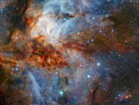 Представленном изображение инфракрасной камерой HAWK-I, установленной на Очень Большои Телескопе ESO (VLT) в Чили. На нем запечатлено звездное скопление RCW 38. Оно находится на расстоянии 5500 световых лет от Солнца в созвездии Парусов.