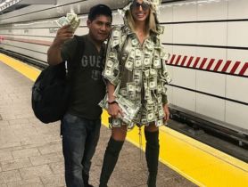 Аргентинская модель Playboy Виктория Сиполитакис (Victoria Xipolitakis) спустилась в метро Нью-Йорка в платье и головном уборе из денег. Девушка прогулялась по платформе, прокатилась в вагонах и фотографировалась с пассажирами, мусорщиком и полицейскими. Всем желающим она позволяла обрывать денежные купюры с ее наряда.