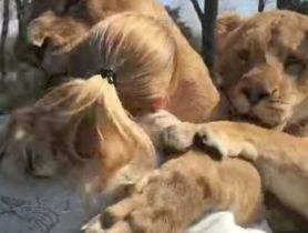 В Сеть попали трогательные кадры, на которых запечатлено, как два льва буквально обнимают и облизывают женщину, которая растила их с рождения. При этом гражданка Швейцарии утверждает, что не виделась с животными семь лет.