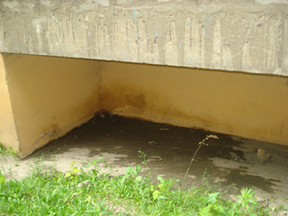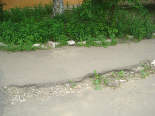 Техническую ошибку устранили, трубу снова заменили и асфальт во дворе проложили. Но ограждающий бордюр поставить забыли. И теперь в дождливую погоду вода не останавливается бордюром, а спокойно продолжает  течь под фундамент дома, продолжая его разрушать.