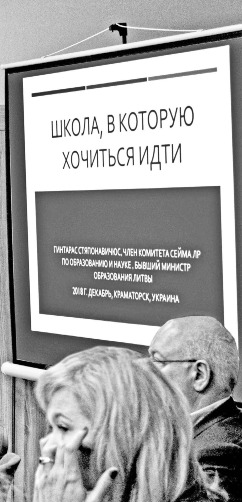 Вероятно, поэтому презентация Гинтараса об опыте литовской реформы образования называлась «Школа, в которую ХОЧИТЬСЯ идти». Да-да, именно ХОЧИТЬСЯ… Вот даже и фото есть.