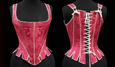 Этот ярко-розовый корсет из шелкового сатина и китового уса был создан примерно в 1890-1895 годах, вероятнее всего, в Англии. Многие из корсетов 19-го века предъявляли своим обладательницам чрезвычайно строгие требования: окружность талии составляла менее 48 см. Тонкость талии увеличивала контраст с бедрами, что зрительно делало нижнюю часть пышнее.