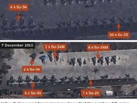 Как сообщает журнал "Jane's Defence Weekly" в статье Sean O'Connor "Russia deploys additional Su-34s to Syria", на спутниковых снимках, сделанных 7 декабря 2015 года, запечатлены четыре дополнительных фронтовых бомбардировщика Су-34 ВКС России на авиабахе Хмеймим близ Латакии (Сирия), что довело количество этих самолетов в составе российской авиационной группировки в Сирии до восьми.