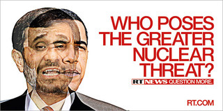 Так, например, один из принтов задаётся вопросом, кто представляет для мира большую угрозу – Иран или США, и наглядно иллюстрирует его наложением изображений Барака Обамы и Махмуда Ахмидинежада. Другой призывает подумать на тему, кто представляет большую угрозу для общественной безопасности – футбольный фанат или полицейский.