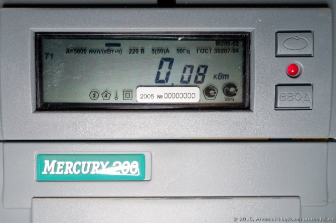 Я выключил свет, "усыпил" компьютер, выдернул из розетки холодильник и посмотрел, какое потребление электричества показывает счётчик.